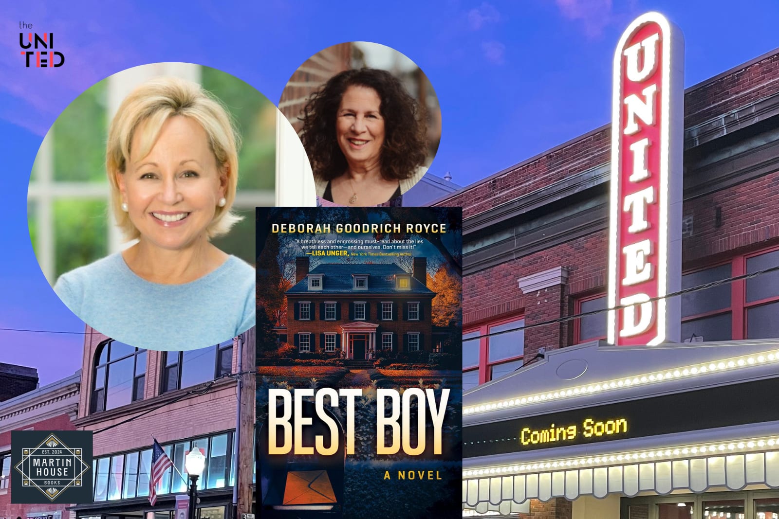 The UNITED and Martin House Books host bestselling author Deborah Goodrich Royce, for an author talk and signing discussing her latest novel, Best Boy. This the official launch event for Best Boy and event attendees will get exclusive access to the book two days before the publication date! Deborah will be in conversation with Robin Kall.