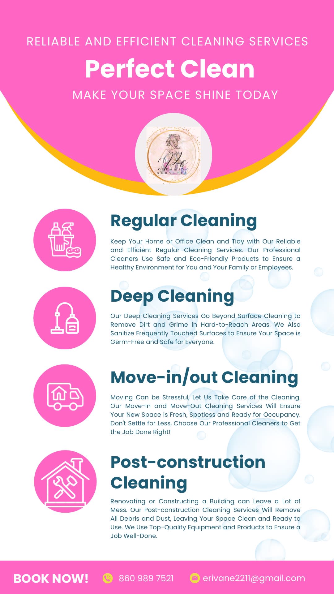We've been serving the community for five years and take pride in our exceptional local cleaning services. Our professional team provides meticulous kitchen cleaning, sparkling bathrooms, and ensures living rooms are cozy and inviting. We also give bedrooms thorough attention, including bed-making and dust removal, so every cleaned room welcomes you back delightfully. If you're seeking top-notch local home cleaning services, Perfect Clean is the ideal choice.