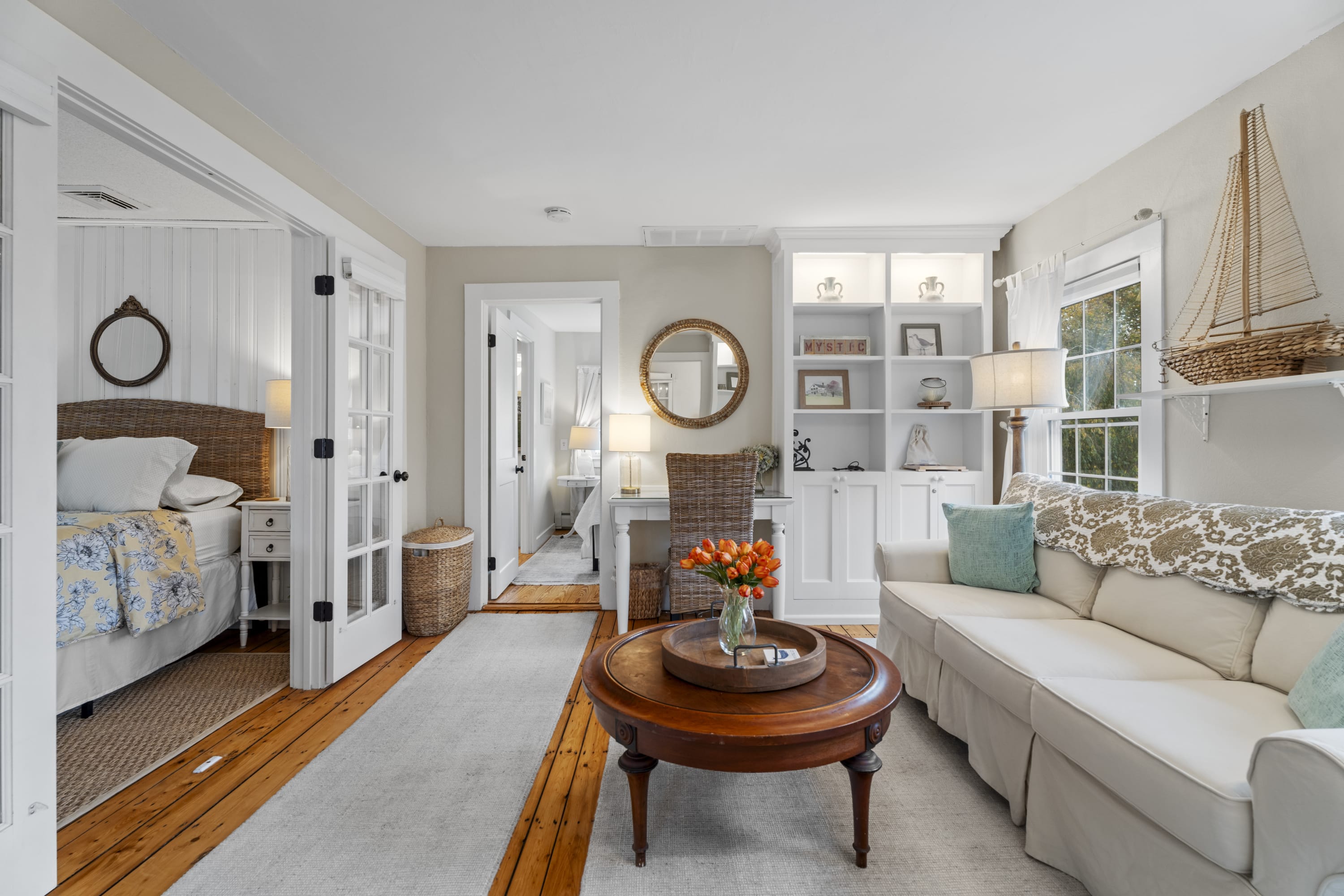 Indulge in a quintessential New England getaway at this beautifully renovated 1876 coastal Farmhouse. Just a few minutes walk from Downtown Mystic and the Seaport, this charming home offers the perfect blend of historic charm and modern comfort.